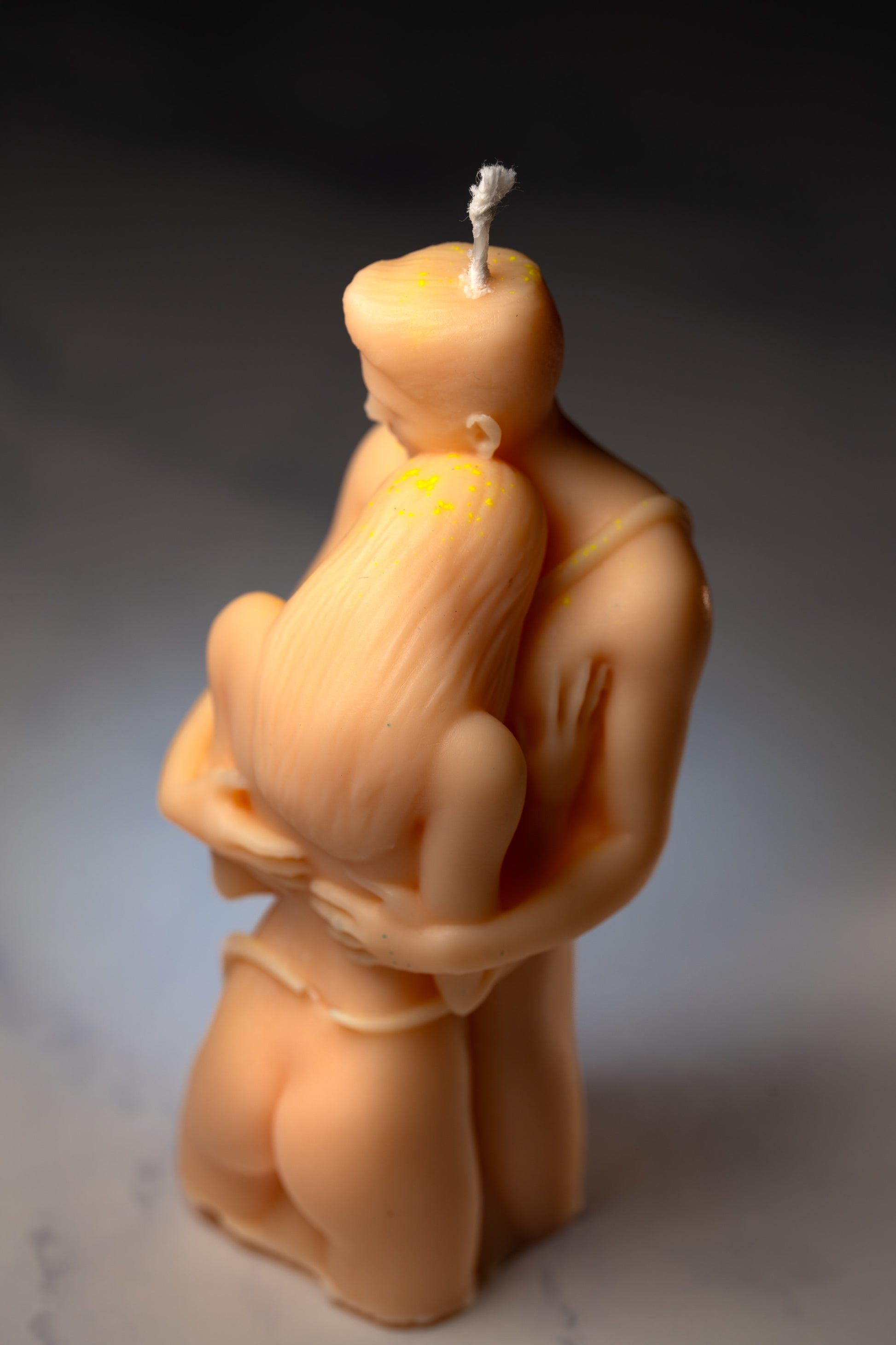 Hellgelbe, elegante, Kerze für einen Romantischen Abend.