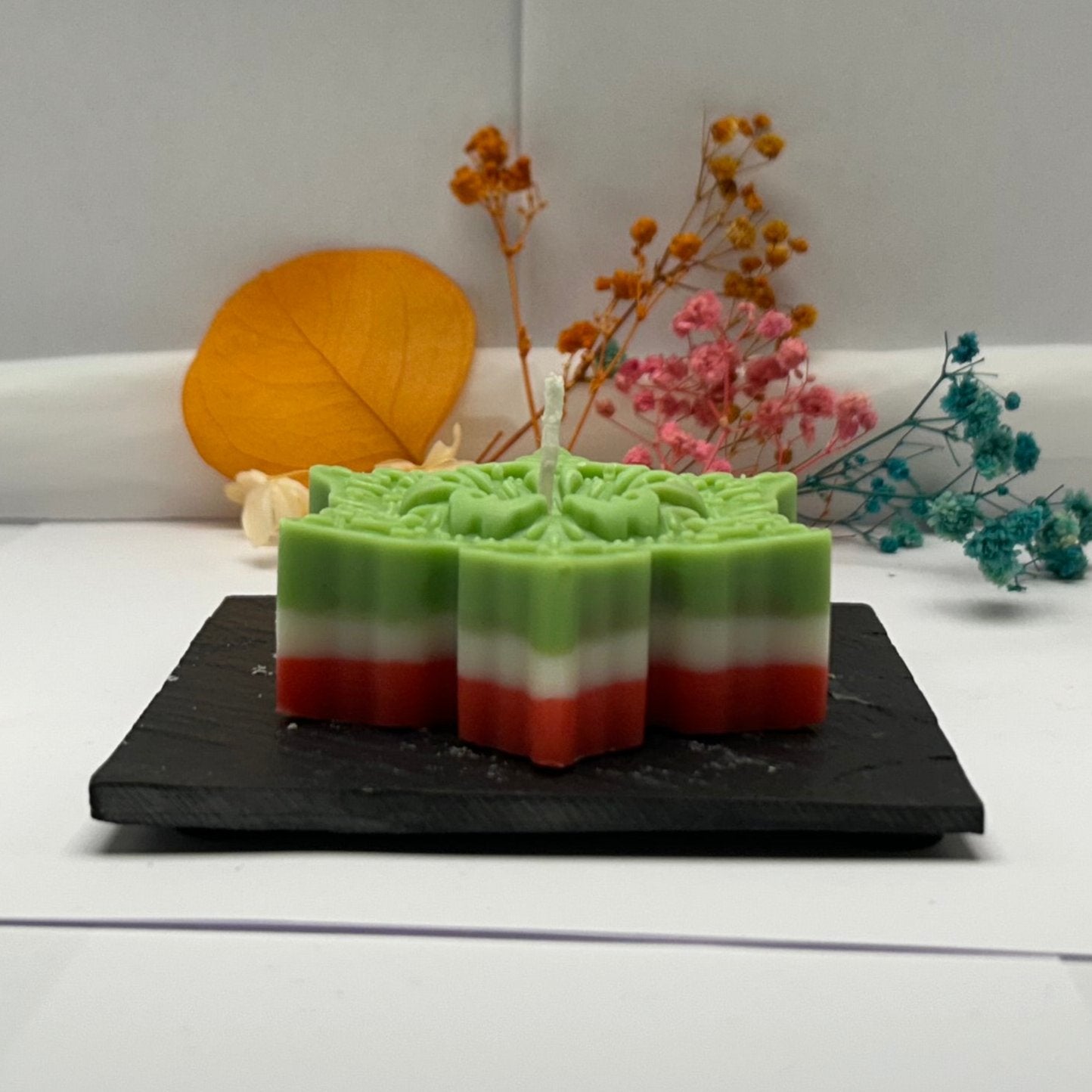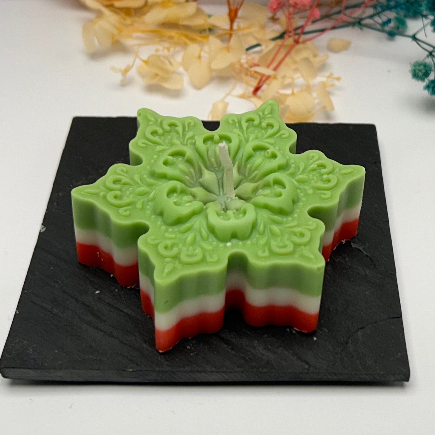 Poinsettia en 3 couleurs : blanc, vert et rouge